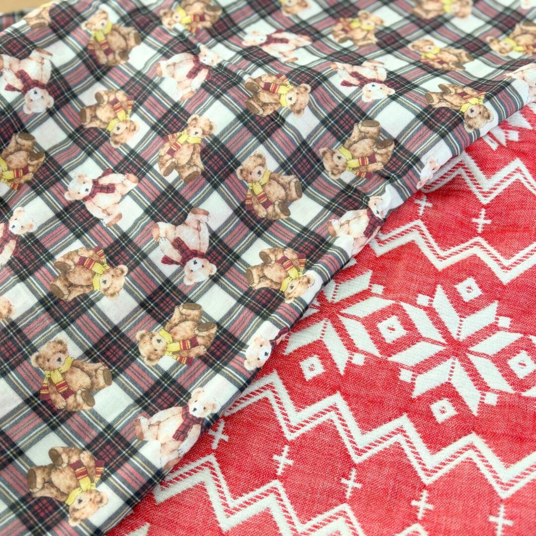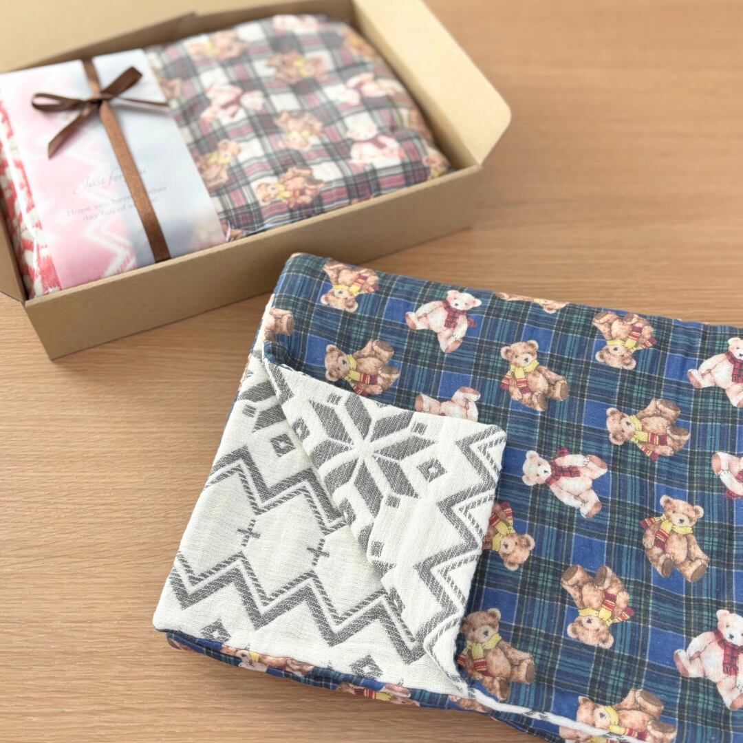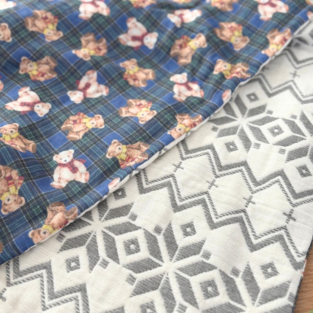 可愛いクマのチェック柄ダブルガーゼと