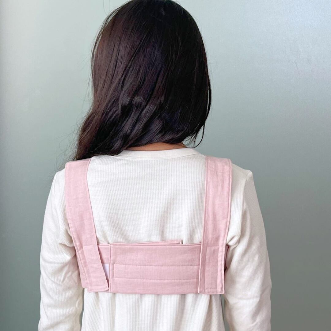背中でマジックテープを留めるだけなので、着用が簡単♫
