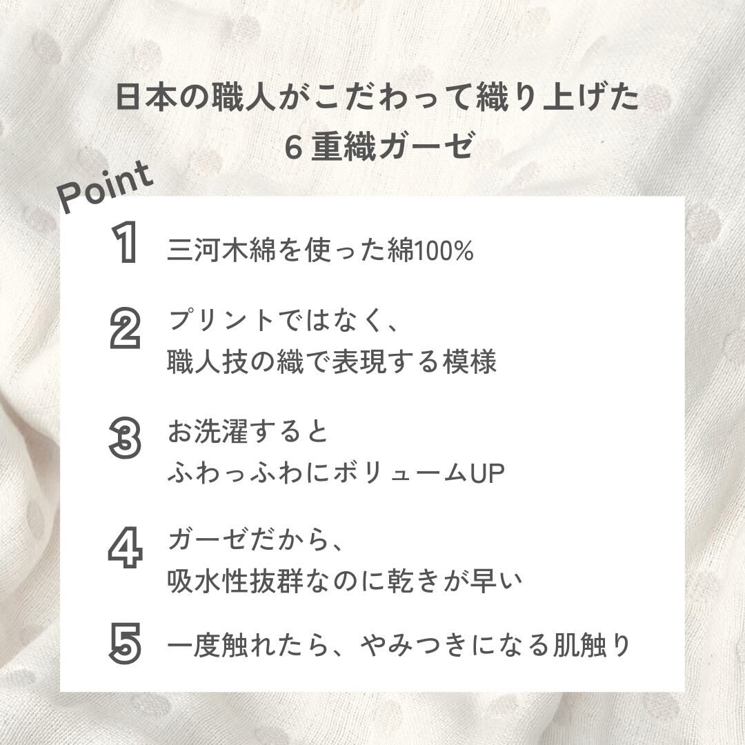 漂白剤などの化学物質を使用していないので、赤ちゃんや敏感肌の方でも安心してお使い頂けます。